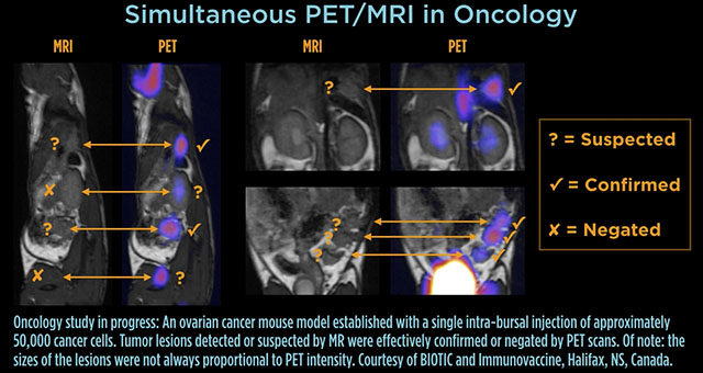 PET and MRI are highly complementary in vivo imaging modalities that can allow you to better understand the complex disease mechanisms at work within small-animal models. Oncology and cardiology experiments involve respiratory and cardiac motion, and in neuroscience, physiological changes within the brain can occur rapidly. Registration errors that occur when an animal is moved just a few feet from one scanning system to another are eliminated.